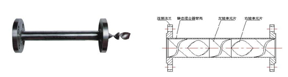 SK型靜態(tài)混合器又稱單螺旋形靜態(tài)混合器,它的單元是扭轉(zhuǎn)180°或270°的螺旋板,安裝入管殼時相鄰的螺旋板分別為左旋和右旋。與SV型靜態(tài)混合器相比,SK型的混合效果較差,且有明顯的放大效應(yīng),但是SK型不容易堵塞,適用于較臟的物料。用于乳化過程時能使液滴分散到10μm,用于一般的混合過程不均勻度系數(shù)a×x-2<5%。
