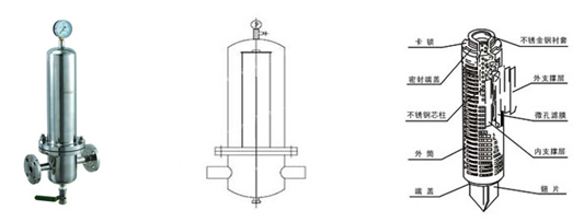 蒸汽過濾器主要是由濾芯和機殼組成,其中殼體多為不銹鋼材質(zhì),以保證過濾器的耐高溫能力。蒸汽過濾器的濾芯材質(zhì)多為聚四氟乙烯(粉末燒結(jié)),濾芯結(jié)構(gòu)可以簡單更換,保證能夠濾除冷凝水,同時不會因為大量的雜質(zhì)而受到堵塞和污染。