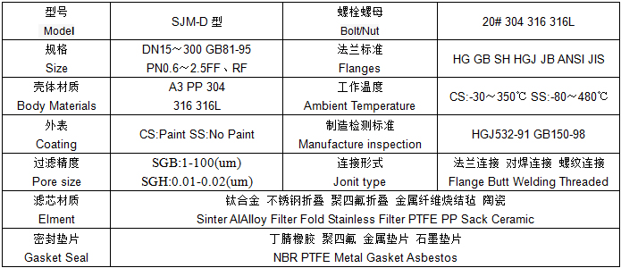 蒸汽過濾器具體參數(shù):