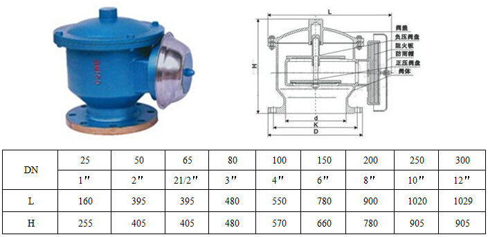 阻火呼吸閥是維護(hù)儲(chǔ)罐氣壓平衡,減少介質(zhì)揮發(fā)的安全節(jié)能產(chǎn)品,呼吸閥充分利用儲(chǔ)罐本身的承壓能力來(lái)減少介質(zhì)排放,其原理是利用正負(fù)壓閥盤(pán)的重量來(lái)控制儲(chǔ)罐的排氣正壓和吸氣負(fù)壓。當(dāng)罐內(nèi)介質(zhì)的壓力在呼吸閥的控制操作壓力范圍之內(nèi)時(shí),呼吸閥不工作,保持油罐的密閉性;當(dāng)往罐內(nèi)補(bǔ)充介質(zhì),使罐內(nèi)上部氣體空間的壓力升高,達(dá)到呼吸閥的操作正壓時(shí),壓力閥被頂開(kāi),氣體從呼吸閥呼出口逸出,使罐內(nèi)壓力不在繼續(xù)增高;當(dāng)往罐外抽出介質(zhì),使罐內(nèi)上部氣體空間的壓力下降,達(dá)到呼吸閥的操作負(fù)壓時(shí),罐外的大氣將頂開(kāi)呼吸閥的負(fù)壓閥盤(pán)頂開(kāi),使外界氣體進(jìn)入罐內(nèi),使罐內(nèi)的壓力不再繼續(xù)下降,讓罐內(nèi)與罐外的氣壓平衡,來(lái)保護(hù)儲(chǔ)罐的安全裝置。